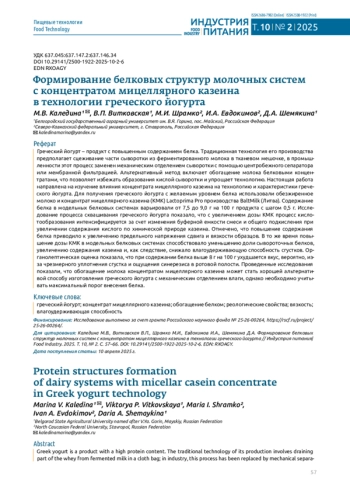 4. Shipulin, V.I.; Dzhangiryan, N.A. Properties of micellar casein and application in food industry. Modern Science and Innovations. 2023. Vol. 1. Pp. 56-64. 10.37493/2307-910X.2023.1.5. DOI: 10.37493/2307-910X.2023.1.5.EDN EDN: PQMCOE