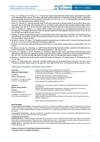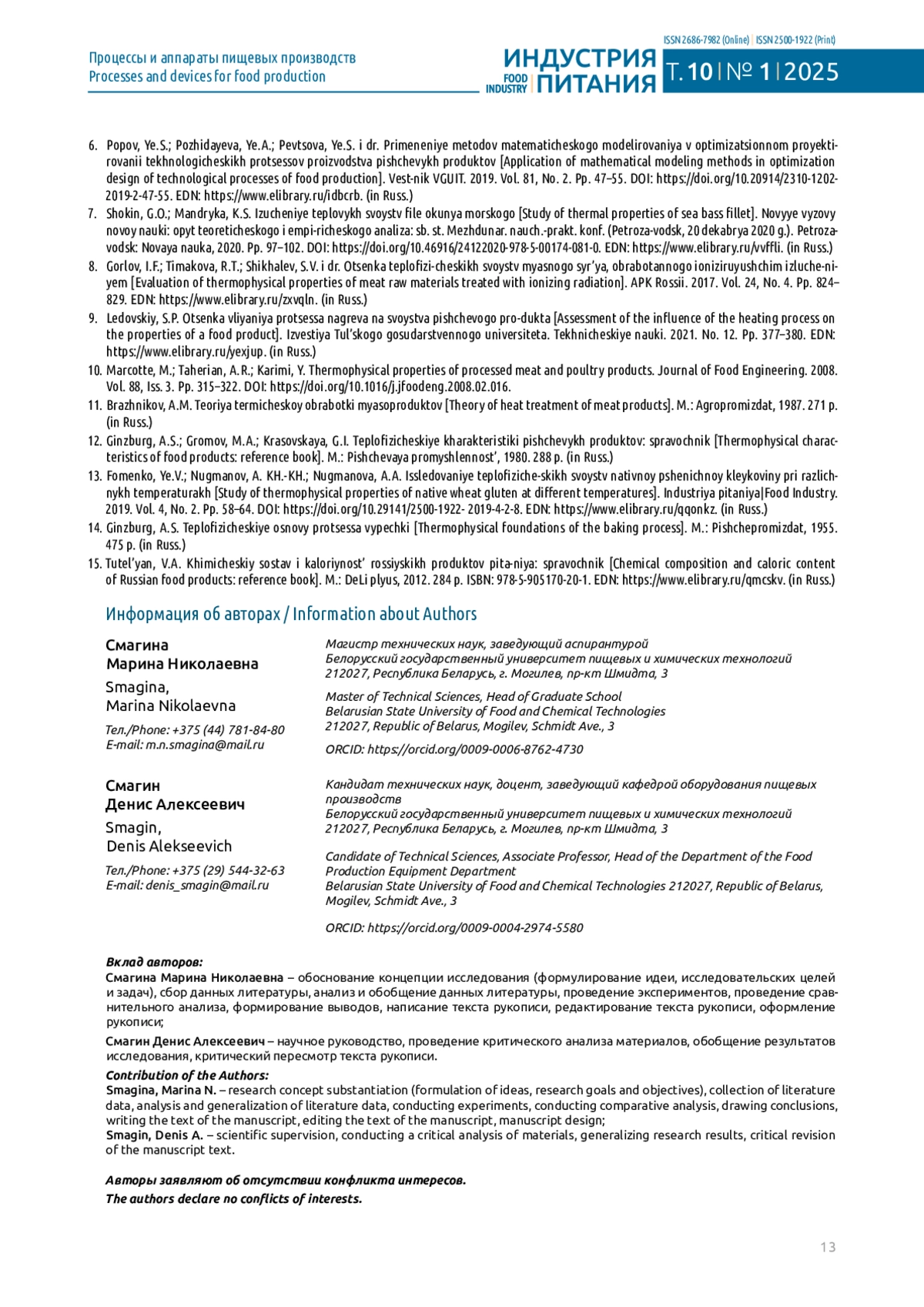 9. Ледовский С.П. Оценка влияния процесса нагрева на свойства пищевого продукта // Известия Тульского государственного университета. Технические науки. 2021. № 12. С. 377-380. EDN: YEXJUP
