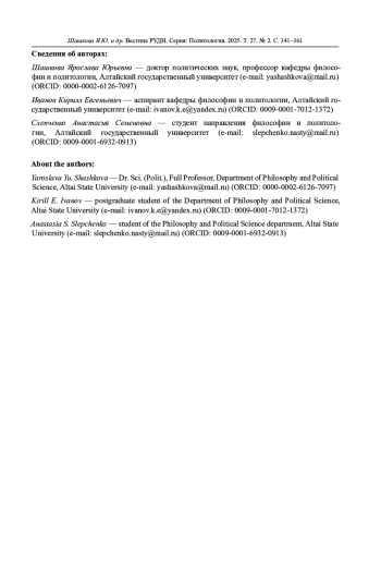 Цель исследования - выяснить, каким образом развлекательный контент влияет на политическую социализацию российской молодежи. В качестве эмпирической базы использованы данные массового опроса молодежи в четырех регионах России (Алтайский край, Томская область, Новосибирская область, Республика Алтай; объем выборки - 1257 респондентов), а также итоги нейросетевого анализа и контент-анализа пользовательских комментариев в Steam и YouTube. По результатам опроса в структуре политической социализации выявлены малочисленное «ядро» молодых пользователей (до 10 %), которое осознает политический подтекст развлекательного контента, и периферия (до 80 %), предпочитающая избегать политики, отрицающая ее влияние на свои ценности и установки и воспринимающая игры и видео исключительно как досуг. Нейросетевой анализ текста определил ключевые тематические кластеры (мегапеременные) в пользовательских дискуссиях: темы войны и мира, виртуального и реального, патриотизма и протеста, социальной справедливости и недоверия к властям. Установлены различия в характере дискурсов: на игровой платформе политика обсуждается более отвлеченно и по-философски, тогда как на видеохостинге дискурс значительно более политизирован (доминируют оценки текущей повестки, поляризация «ура-патриотов» vs. оппозиции). В заключение делается вывод о противоречивой роли развлекательного контента как особого канала политической социализации, он незаметно транслирует политические сюжеты, которые осознанно воспринимаются активным меньшинством молодежи и могут оказывать косвенное влияние на пассивное большинство. Полученные результаты отражают сегментацию молодежной аудитории и необходимость учета этой специфики при анализе влияния цифровой среды на формирование политической идентичности.