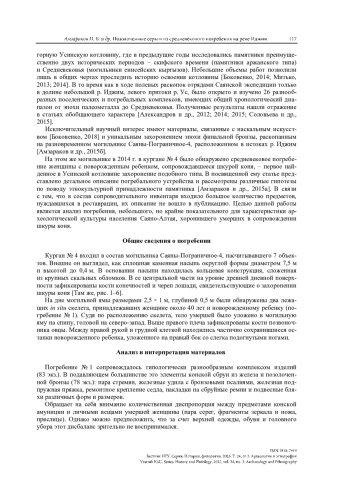 5. Амзараков П. Б., Лазаретов И. П., Поляков А. В. Погребение финальной стадии эпохи поздней бронзы в истоках реки Иджим (Ермаковский район Красноярского края) // Вестник НГУ. Серия: История, филология. 2015б. Т. 14, № 7: Археология и этнография. С. 72-83.