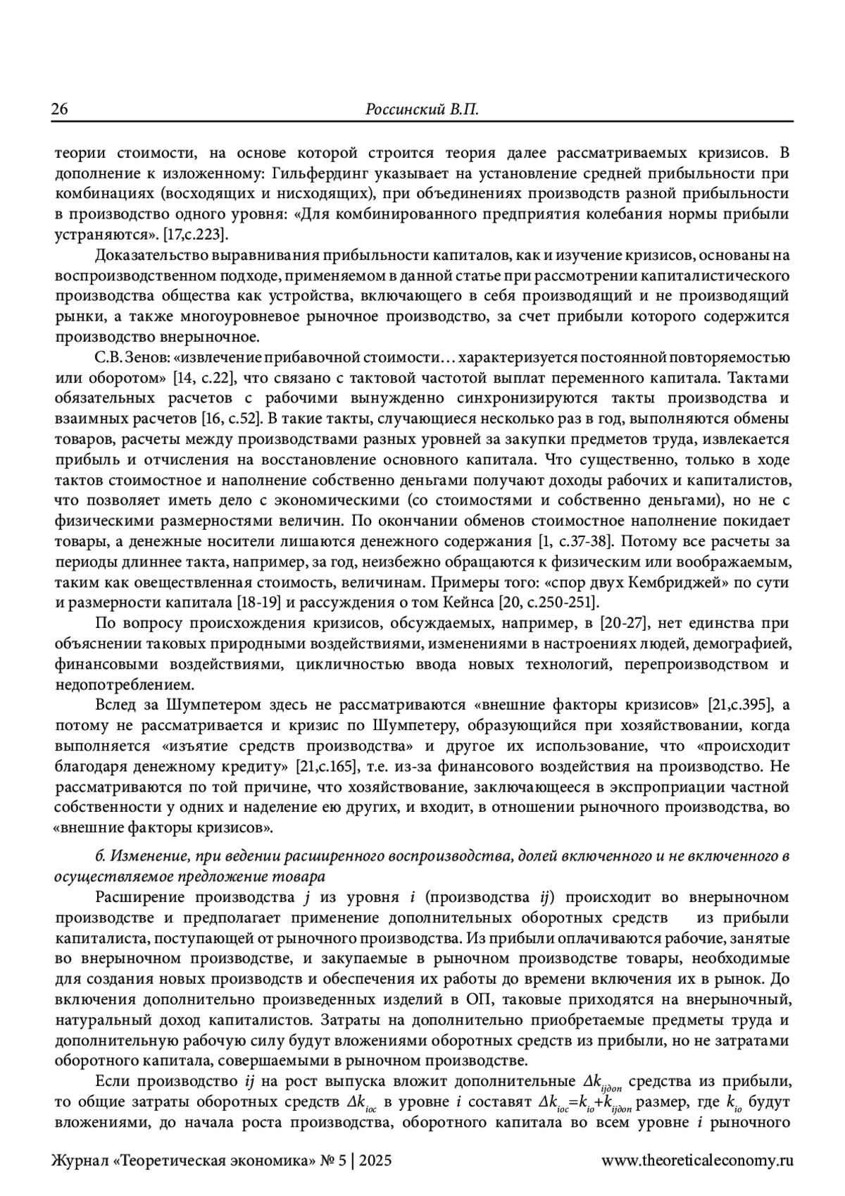 1. Россинский, В.П. О причинно-следственном порядке в теории процента/В.П. Россинский. - Текст: электронный // Теоретическая экономика. - 2024 - №12. - С.33-44. - URL: http://www.theoreticaleconomy.ru (Дата публикации: 30.12.2024). DOI: 10.52957/2221-3260-2024-12-33-44