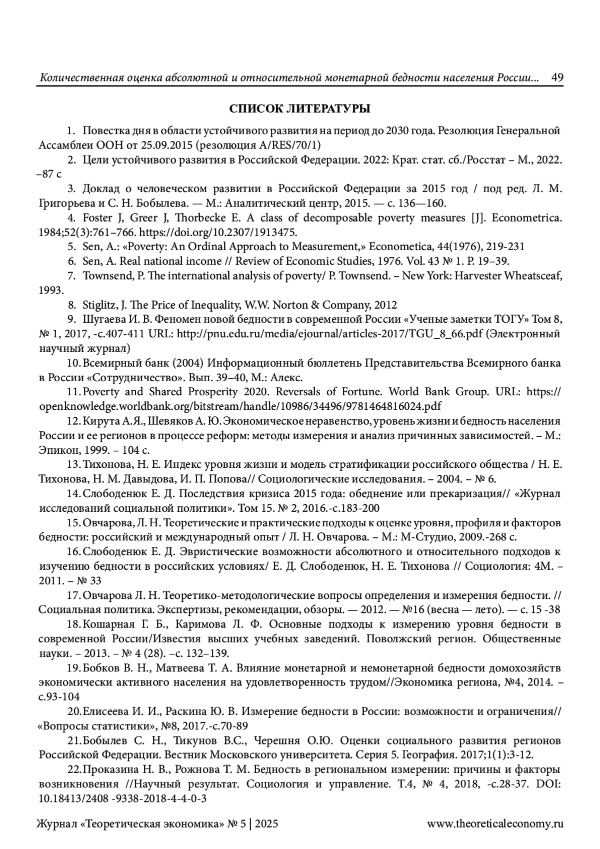 17. Овчарова Л. Н. Теоретико-методологические вопросы определения и измерения бедности. // Социальная политика. Экспертизы, рекомендации, обзоры. - 2012. - №16 (весна - лето). - с. 15 -38.
