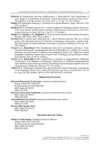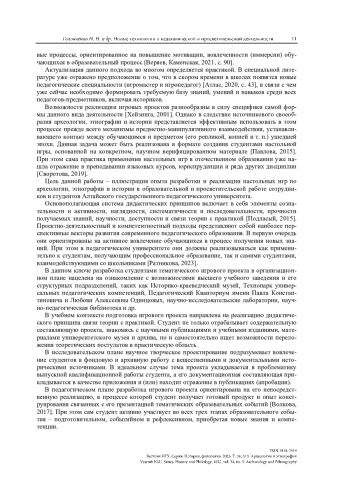 10. Ратникова Д. В. Проектная деятельность в структуре подготовки будущего учителя // Педагогическое образование на Алтае. 2023. № 1. С. 113-117.