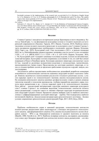 6. Гиря Е. Ю., Барков А. В., Хлопачев Г. А., Колесник А. В. Уникальное изделие из бивневого отщепа со стоянки верхнего палеолита Стрелка-1 (Красноярск) // Stratum plus. 2025. № 1. С. 315-331. https://doi.org/10.55086/sp251315331
