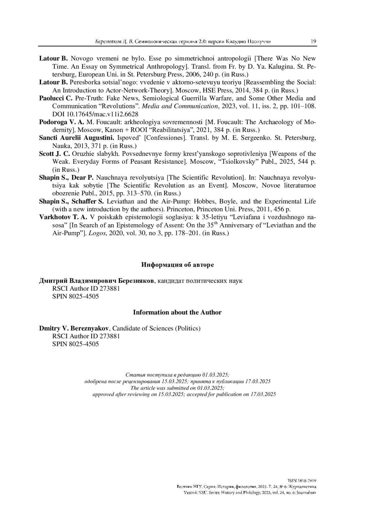 17. Paolucci C. Pre-Truth: Fake News, Semiological Guerrilla Warfare, and Some Other Media and Communication “Revolutions” // Media and Communication. 2023. Vol. 11, iss. 2. P. 101-108. https://doi.org/10.17645/mac.v11i2.6628