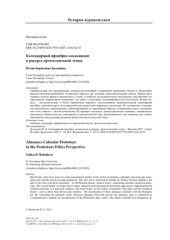 Статья: Календарный прообраз альманахов в ракурсе протестантской этики (2025)