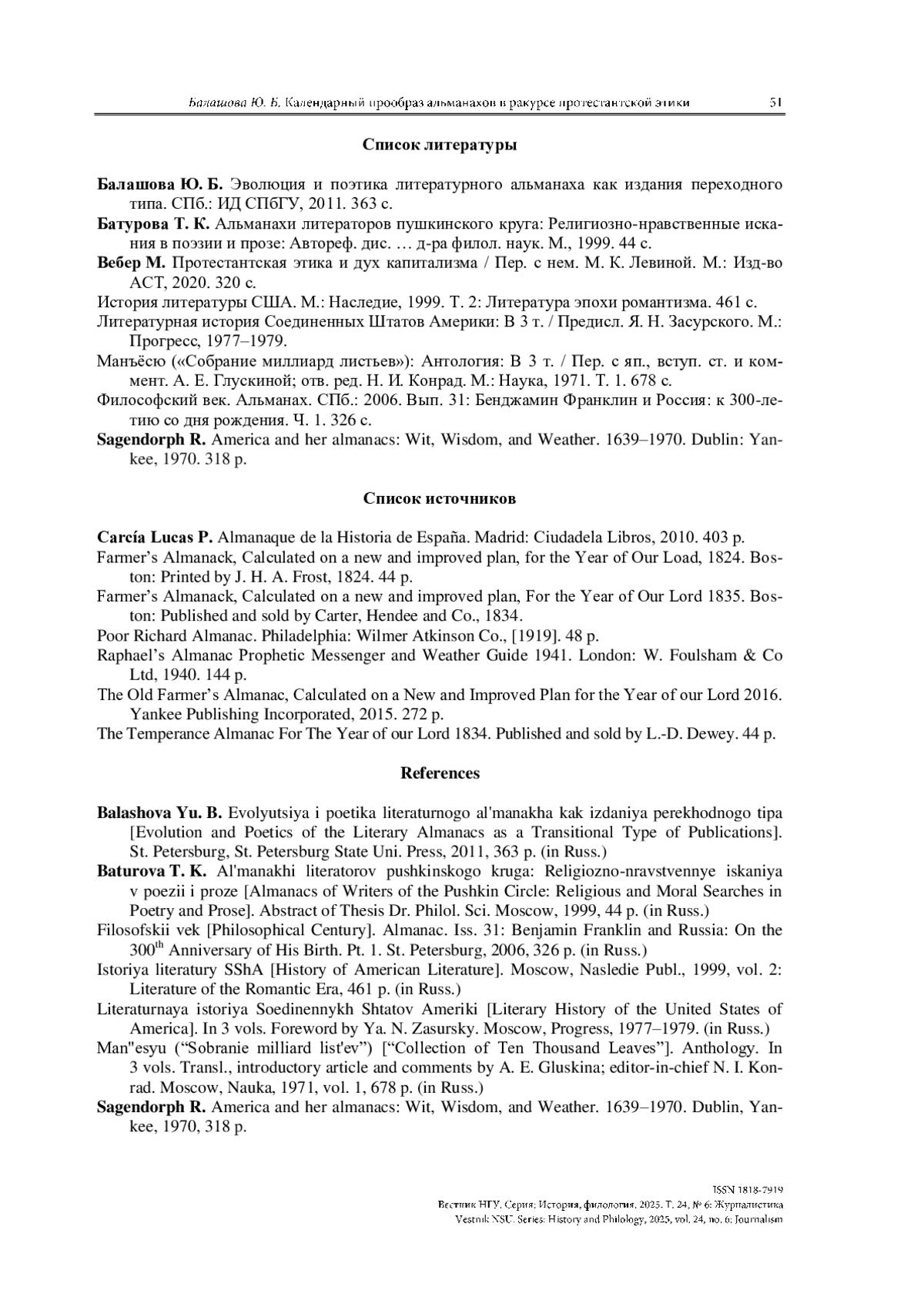 БАЛАШОВА Ю. Б. КАЛЕНДАРНЫЙ ПРООБРАЗ АЛЬМАНАХОВ В РАКУРСЕ ПРОТЕСТАНТСКОЙ ЭТИКИ // ВЕСТНИК НГУ. СЕРИЯ: ИСТОРИЯ, ФИЛОЛОГИЯ. 2025. ТОМ 24, № 6