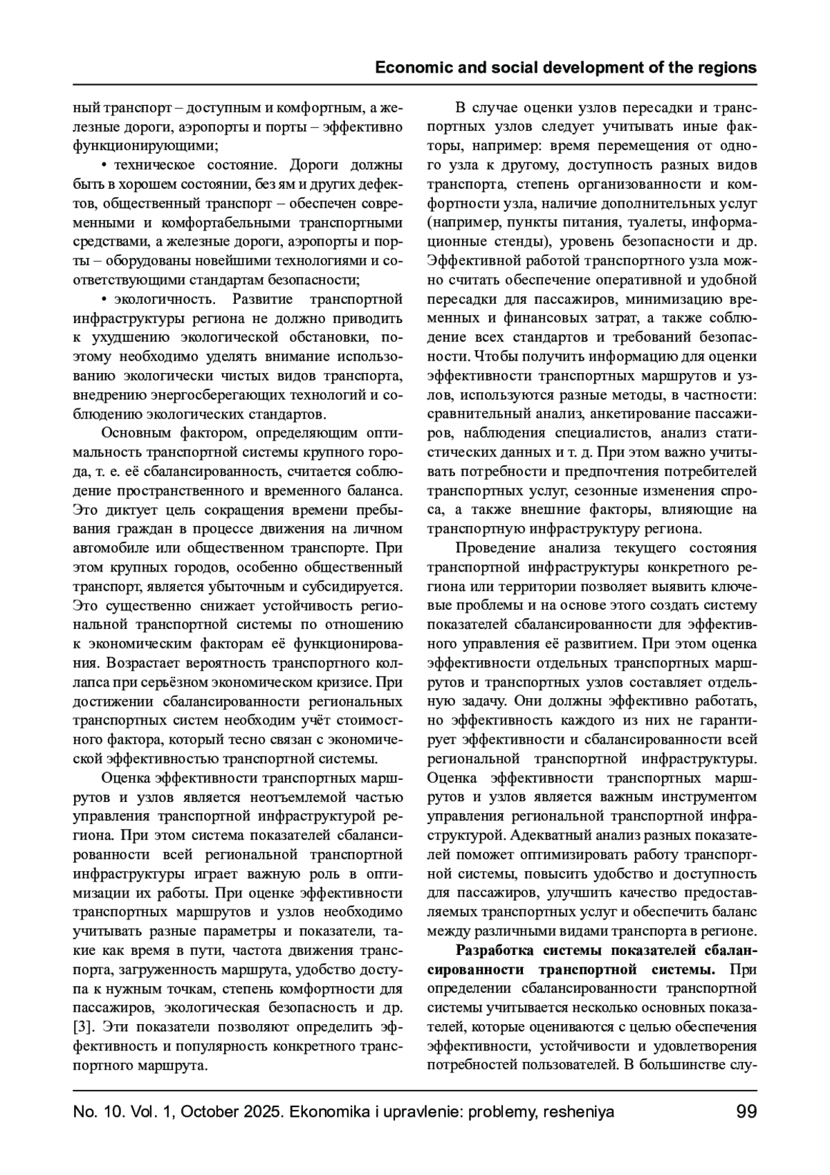 Региональная транспортная инфраструктура играет ключевую роль в развитии экономики и обеспечении мобильности населения. Чтобы её функционирование было эффективным, необходимо учитывать много факторов, в том числе и трудно измеряемых в стоимостном выражении, включая доступность, безопасность, устойчивость и экологическую приемлемость [10].