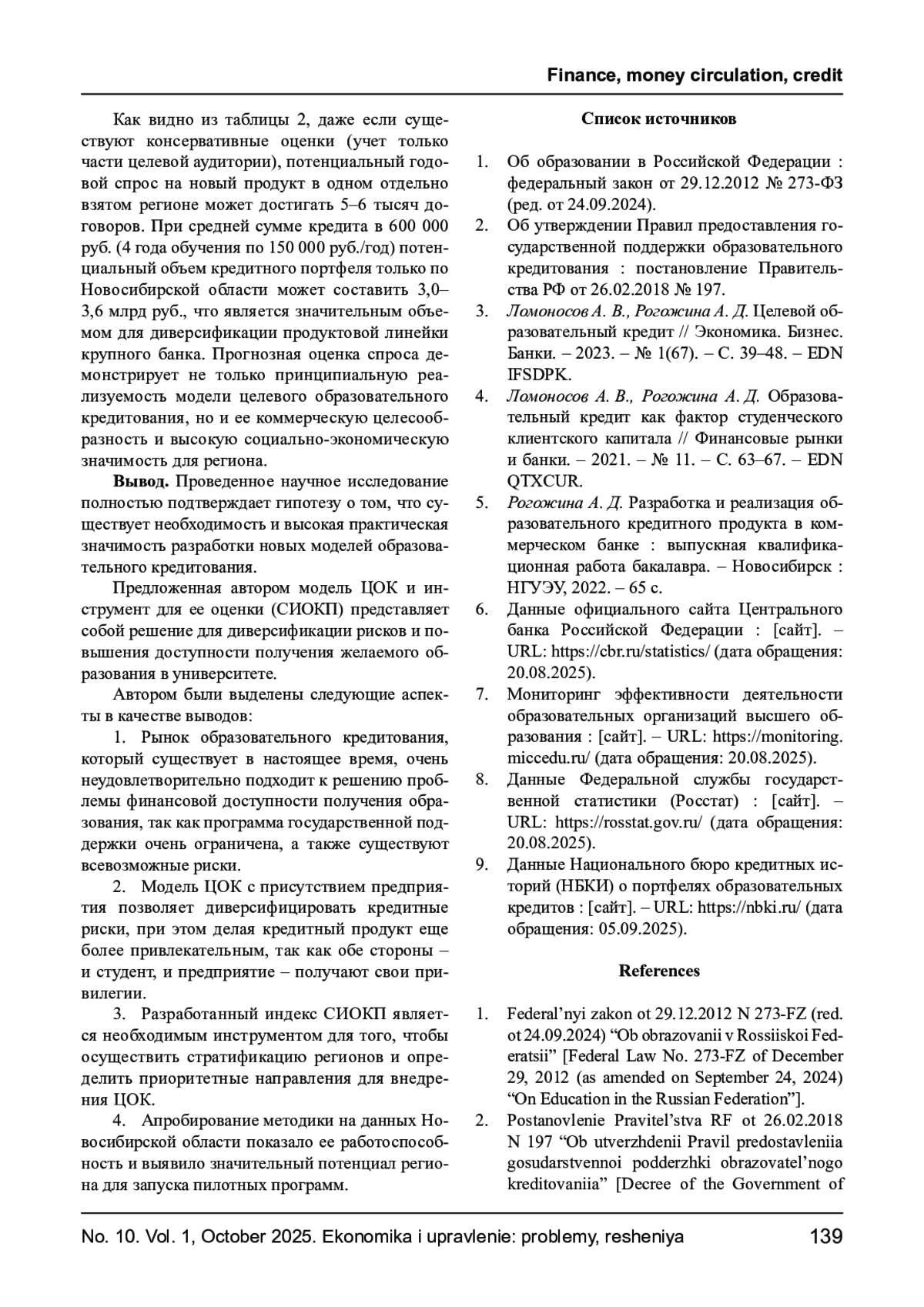 3. Ломоносов А. В., Рогожина А. Д. Целевой образовательный кредит // Экономика. Бизнес. Банки. - 2023. - № 1(67). - С. 39-48. EDN: IFSDPK