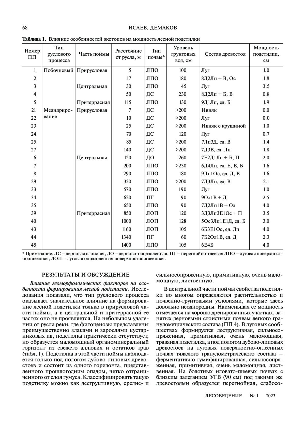 Лесные подстилки, являющиеся продуктом жизнедеятельности и чутким интегральным индикатором состояния биогеоценозов, относятся к их специфической мезострате, выполняющей важные экологические функции, поэтому не случайно почвоведы уделяют очень много внимания их изучению. Несмотря на то, что к настоящему времени накоплен довольно обширный материал по их составу и особенностям формирования в различных биогеоценозах (Мелехов, 1957; Молчанов, 1960; Кошельков, 1961; Шакиров, 1964; Смирнов, 1967; Смольянинов, 1969; Габеев, 1972; Карпачевский, 1973, 1981; Дылис и др., 1975; Сапожников, 1984, 1987; Дылис, 1985; Попова, Горбачев, 1988; Богатырёв, Щенина, 1989; Богатырёв, 1990, 1996; Сабиров, 1996; Ушакова, 1999; 2000; Аткина, Аткин, 2000; Рыжкова, 2003; Богатырёв и др., 2004, 2019; Пуряев, Газизуллин, 2011; Демаков и др., 2013, 2015, 2017), многие вопросы остаются пока слабо освещенными и дискуссионными. Особенно недостаточно изучены подстилки в пойменных лесах, почвенный покров которых характеризуется значительной вариабельностью (Виленский, 1955; Добровольский, 1968; Фаткуллин, 1968; Максимов, 1974; Миркин, 1974; Шаталов и др., 1984; Браславская, 2004; Исаев, 2008), обусловленной комплексным воздействием большого числа биогеоценотических и гидрологических факторов.