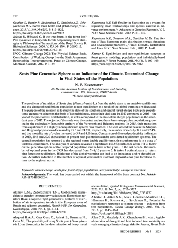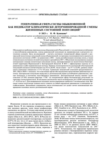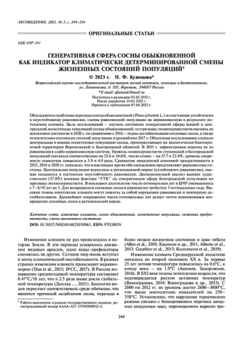 Статья: ГЕНЕРАТИВНАЯ СФЕРА СОСНЫ ОБЫКНОВЕННОЙ КАК ИНДИКАТОР КЛИМАТИЧЕСКИ ДЕТЕРМИНИРОВАННОЙ СМЕНЫ ЖИЗНЕННЫХ СОСТОЯНИЙ ПОПУЛЯЦИЙ (2023)