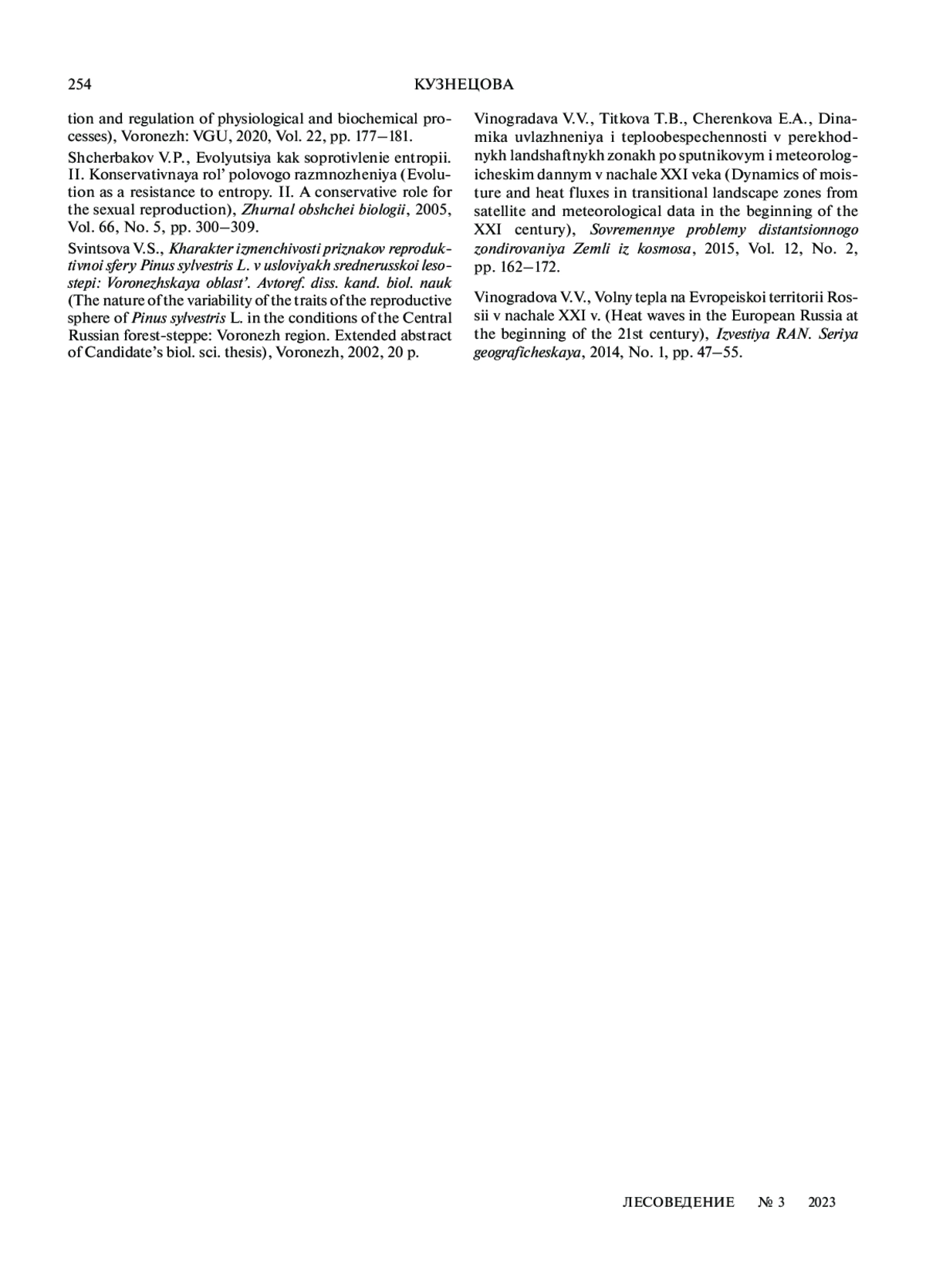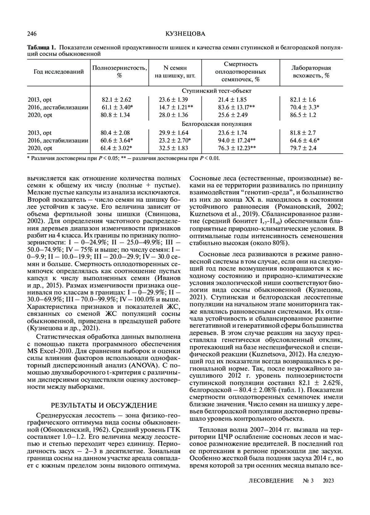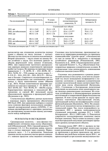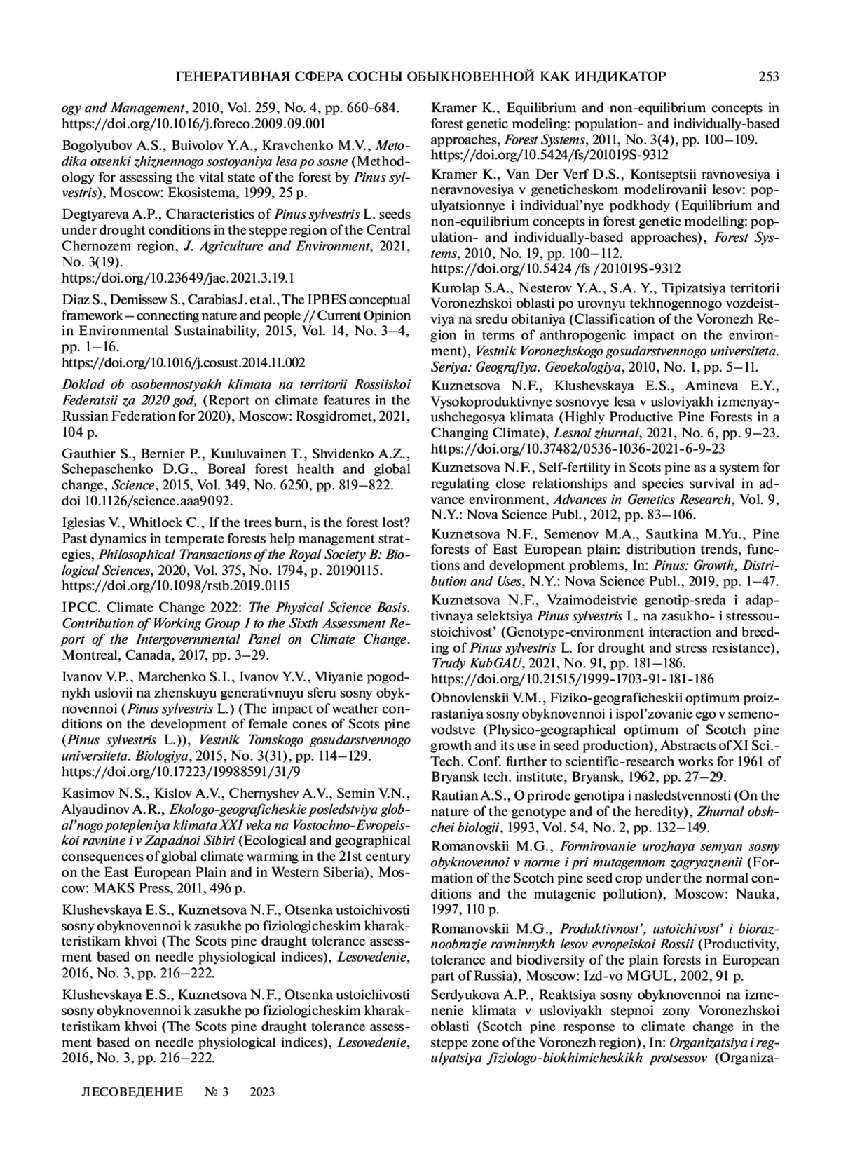 КУЗНЕЦОВА Н. Ф. ГЕНЕРАТИВНАЯ СФЕРА СОСНЫ ОБЫКНОВЕННОЙ КАК ИНДИКАТОР КЛИМАТИЧЕСКИ ДЕТЕРМИНИРОВАННОЙ СМЕНЫ ЖИЗНЕННЫХ СОСТОЯНИЙ ПОПУЛЯЦИЙ // ЛЕСОВЕДЕНИЕ. 2023. № 3