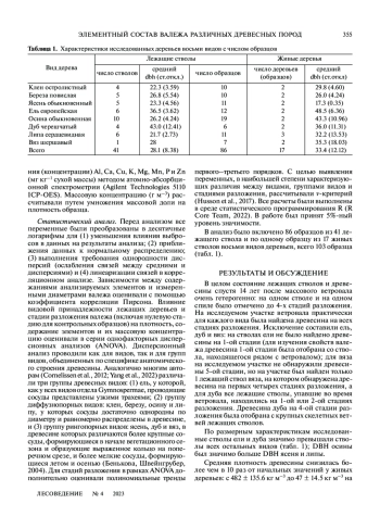 Статья: ЭЛЕМЕНТНЫЙ СОСТАВ ВАЛЕЖА РАЗЛИЧНЫХ ДРЕВЕСНЫХ ПОРОД И СТАДИЙ РАЗЛОЖЕНИЯ В ШИРОКОЛИСТВЕННОМ ЛЕСУ ЗАПОВЕДНИКА “КАЛУЖСКИЕ ЗАСЕКИ” (2023)
