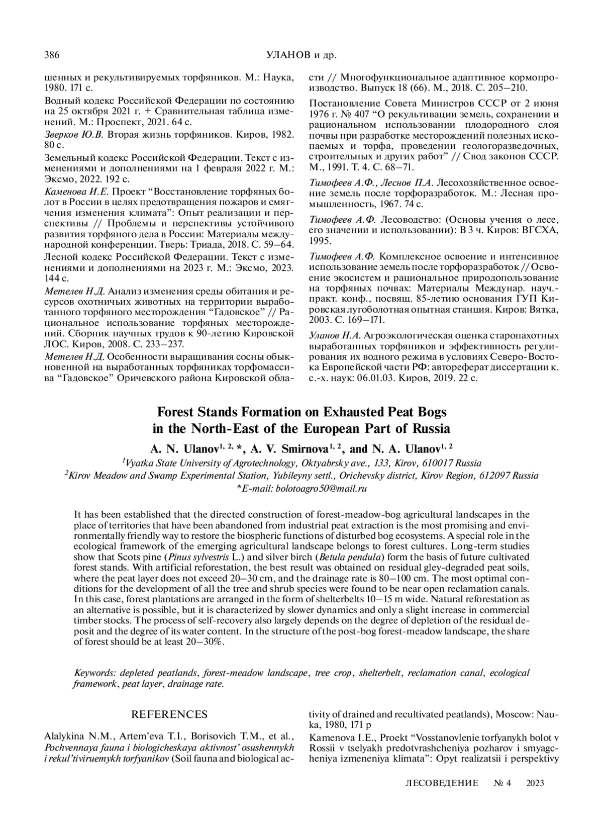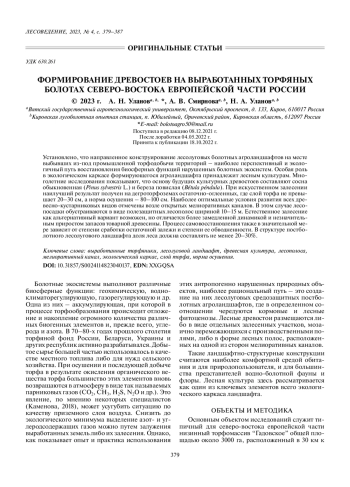 УЛАНОВ А. Н., СМИРНОВА А. В., УЛАНОВ Н. А. ФОРМИРОВАНИЕ ДРЕВОСТОЕВ НА ВЫРАБОТАННЫХ ТОРФЯНЫХ БОЛОТАХ СЕВЕРО-ВОСТОКА ЕВРОПЕЙСКОЙ ЧАСТИ РОССИИ // ЛЕСОВЕДЕНИЕ. 2023. № 4