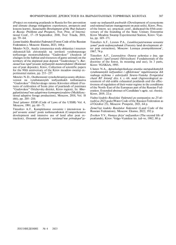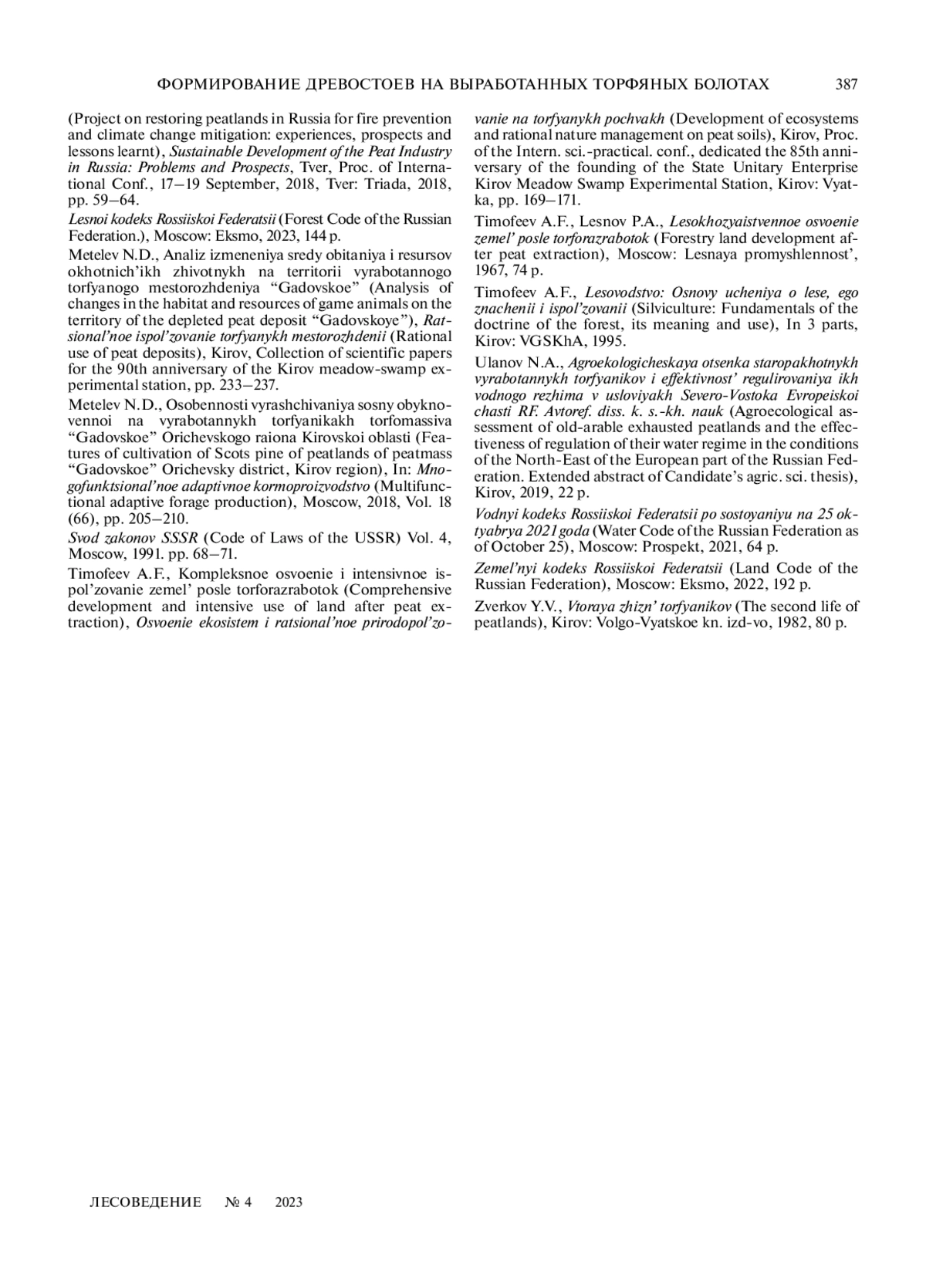 Статья: ФОРМИРОВАНИЕ ДРЕВОСТОЕВ НА ВЫРАБОТАННЫХ ТОРФЯНЫХ БОЛОТАХ СЕВЕРО-ВОСТОКА ЕВРОПЕЙСКОЙ ЧАСТИ РОССИИ (2023)