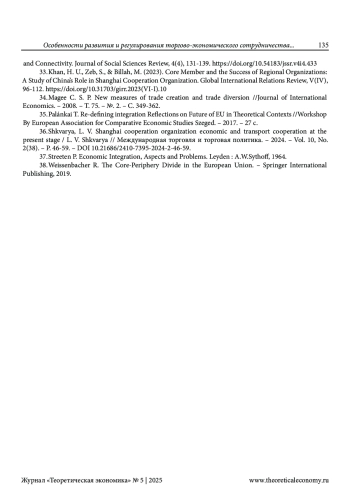 36. Shkvarya, L. V. Shanghai cooperation organization economic and transport cooperation at the present stage / L. V. Shkvarya // Международная торговля и торговая политика. - 2024. - Vol. 10, No. 2(38). - P. 46-59. DOI: 10.21686/2410-7395-2024-2-46-59 EDN: PLCZUM