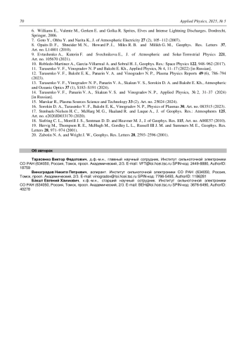 - Stenbaek‐Nielsen H. C., McHarg M. G., Haa-land R., Luque A. / J. of Geophys. Res.: Atmospheres. 2020. Vol. 125. Art. no. e2020JD033170.