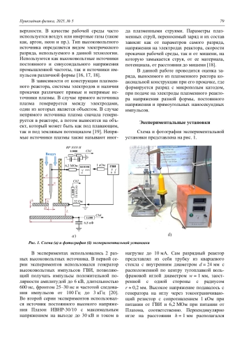 Плазменные технологии, использующие холодную плазму, находят применение в раз-личных областях, включая: медицину, сельское хозяйство, промышленность, технологии производства материалов, энергетику и пр. [1–6]. Существуют различные способы по со-зданию холодной плазмы. Наиболее распространены установки, использующие поверхностный и объемный барьерный разряд [7–9], коронный разряд.
