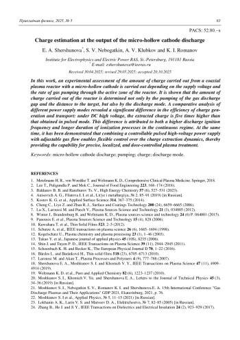 Оценка заряда, формируемого на выходе из коаксиального плазменного реактора с микрополым катодом Шершунова Е. А., Небогаткин С. В., Клубков А. В., Романов К. И.