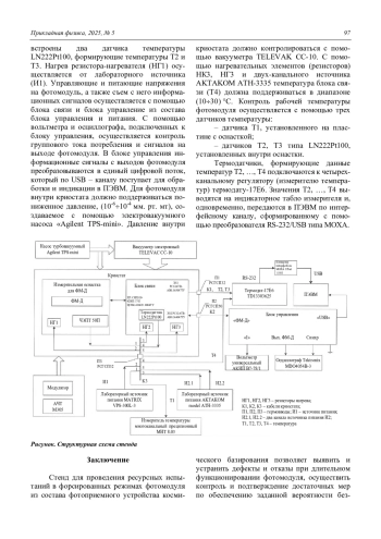 Стенд для проведения ресурсных испытаний в форсированных режимах фотомодуля из состава фотоприемного устройства космического базирования позволяет выявить и устранить дефекты и отказы при длительном функционировании фотомодуля, осуществить контроль и подтверждение достаточных мер по обеспечению заданной вероятности безотказной работы и назначенного ресурса, реализуемого в форсированном режиме по воз-действующим факторам, подтвердить неразрушающий характер электротермотренировки фотомодуля.