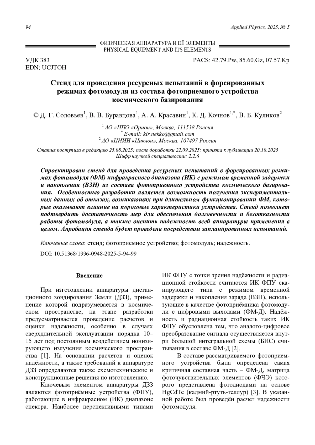 - Романов Е. К., Бурлаков В. И., Чеботаренко Д. Д., Юдовская А. Д. / Прикладная физика. 2025. № 3. С. 25–33.