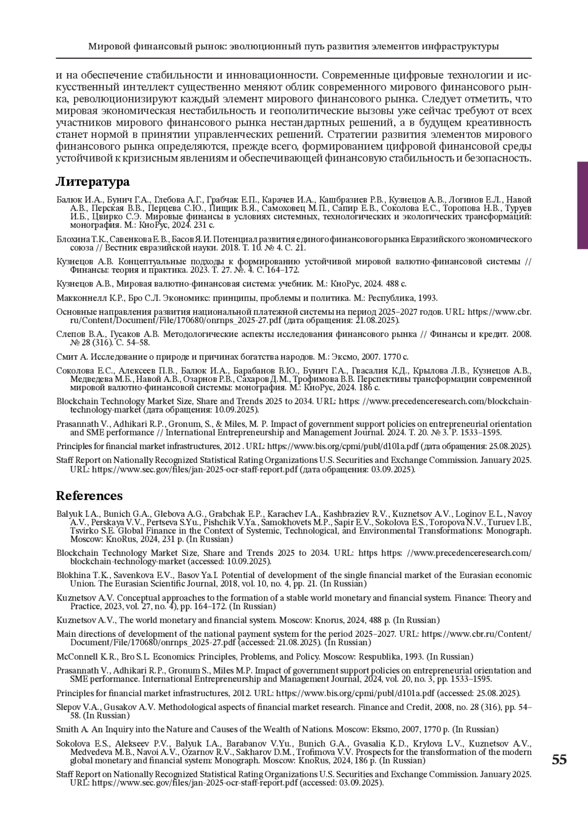 3. Кузнецов А.В. Концептуальные подходы к формированию устойчивой мировой валютно-финансовой системы // Финансы: теория и практика. 2023. Т. 27. №. 4. С. 164-172.