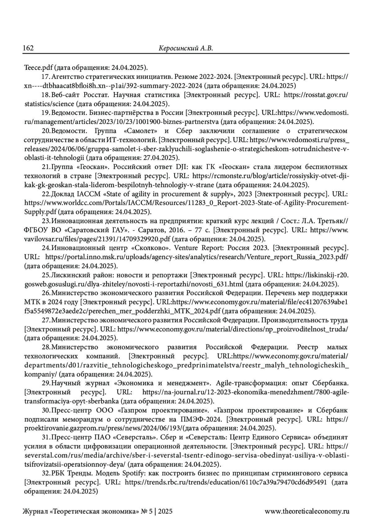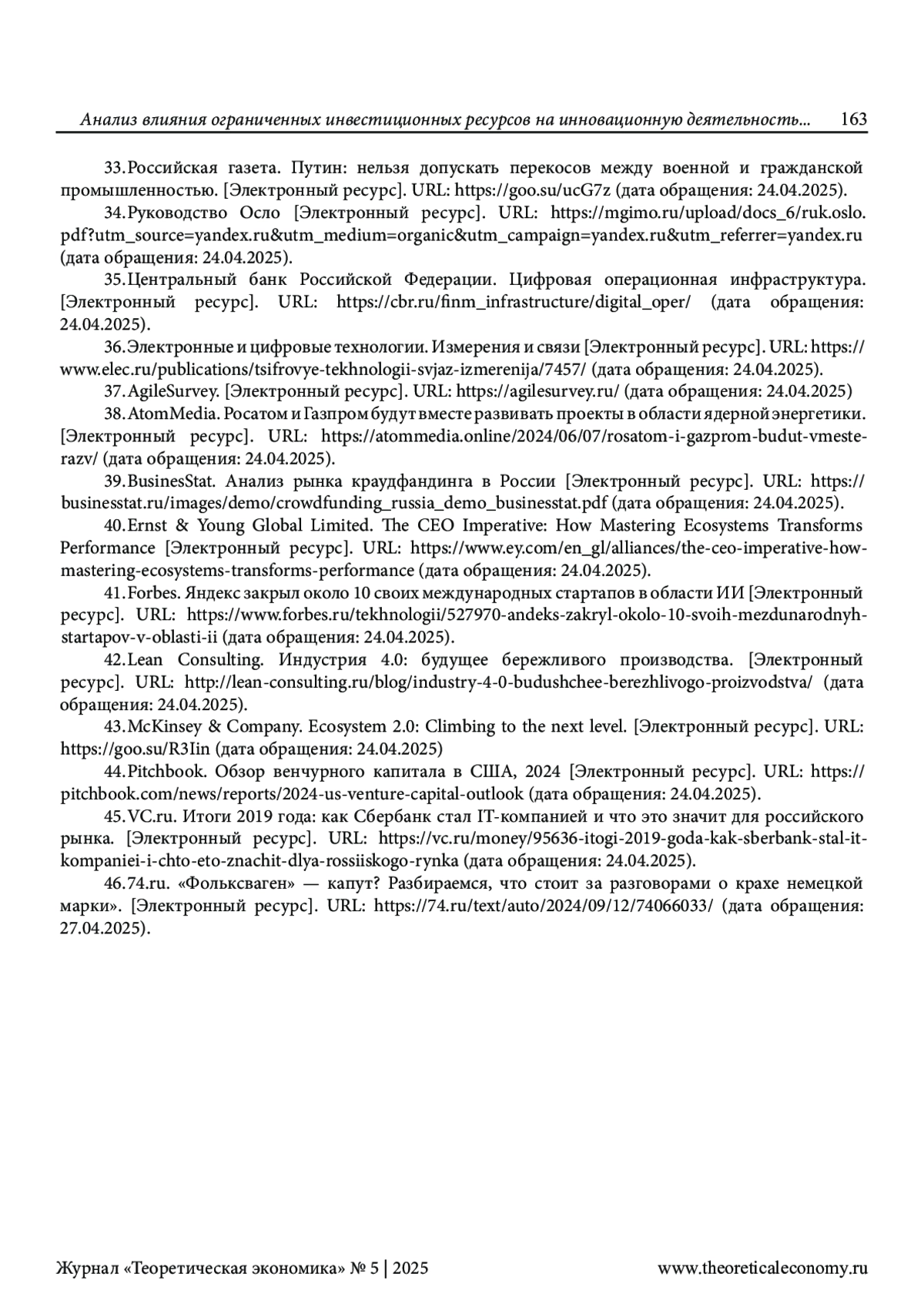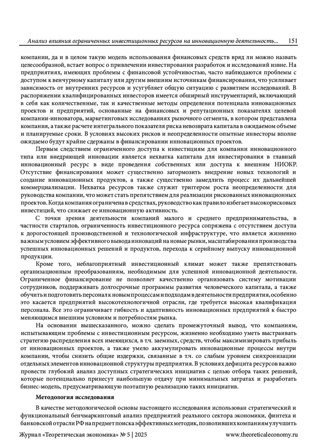 КЕРОСИНСКИЙ А. В. АНАЛИЗ ВЛИЯНИЯ ОГРАНИЧЕННЫХ ИНВЕСТИЦИОННЫХ РЕСУРСОВ НА ИННОВАЦИОННУЮ ДЕЯТЕЛЬНОСТЬ ПРЕДПРИЯТИЯ // ТЕОРЕТИЧЕСКАЯ ЭКОНОМИКА. 2025. № 5 (125)