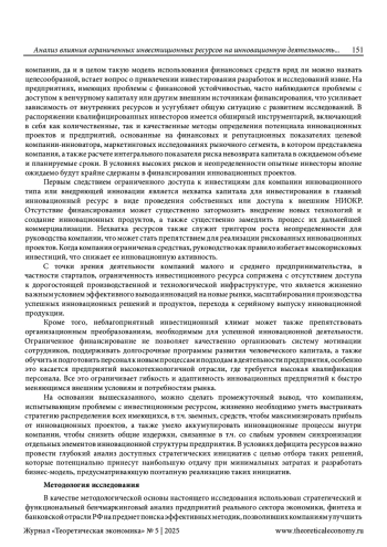 Статья: АНАЛИЗ ВЛИЯНИЯ ОГРАНИЧЕННЫХ ИНВЕСТИЦИОННЫХ РЕСУРСОВ НА ИННОВАЦИОННУЮ ДЕЯТЕЛЬНОСТЬ ПРЕДПРИЯТИЯ (2025)