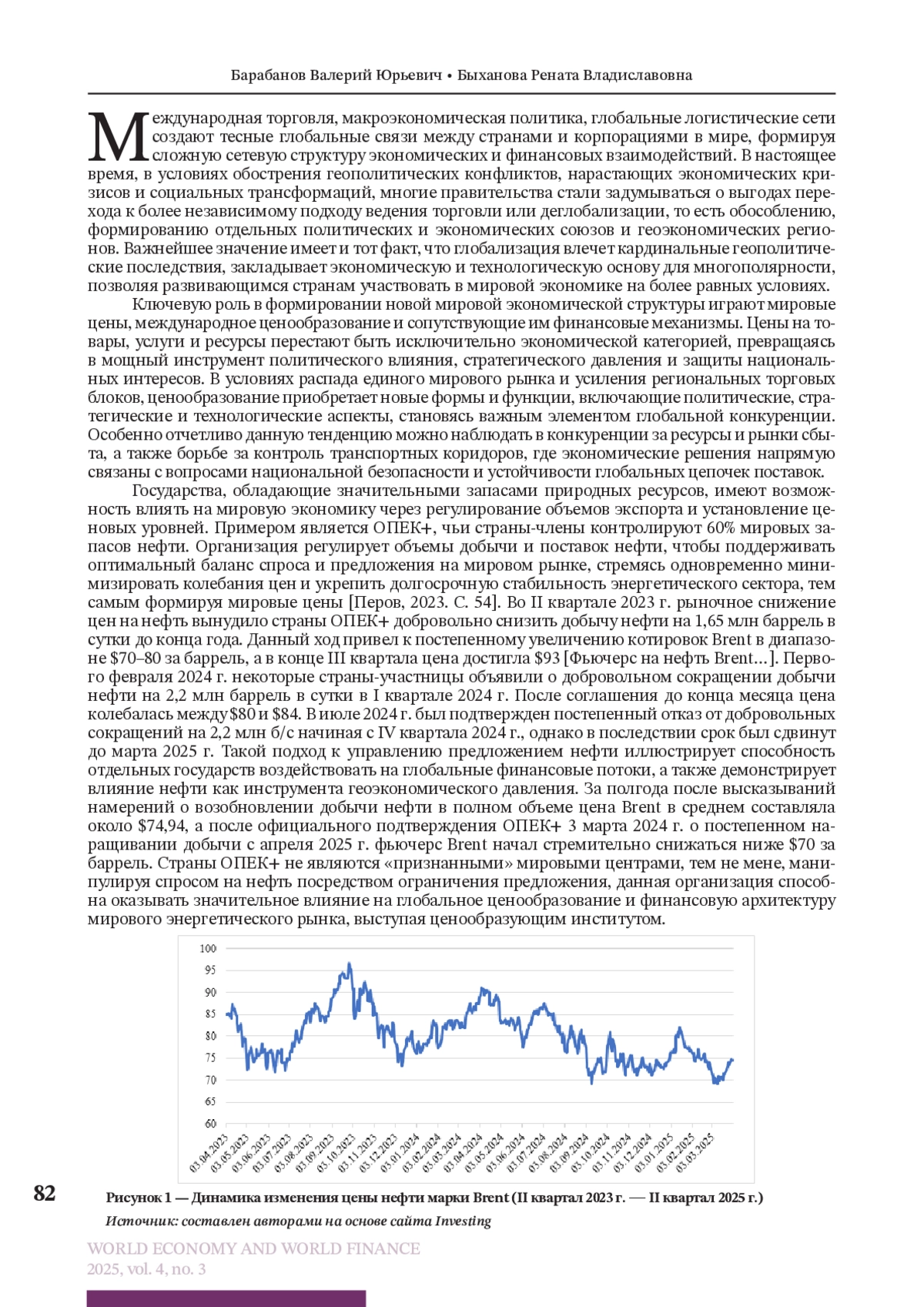 Современная мировая экономика переживает процесс трансформации, связанный с ослаблением глобализационных тенденций и переходом к многополярной архитектуре. Усиление политических и экономических противоречий стимулирует формирование региональных союзов и геоэкономических блоков, что сопровождается изменением роли международной торговли, транспортной логистики и макроэкономической политики. В этих условиях ключевым фактором становится международное ценообразование, которое выходит за рамки сугубо экономической категории и превращается в инструмент стратегического влияния, защиты национальных интересов и формирования новых центров силы. В данной статье рассматриваются механизмы воздействия цен на энергоресурсы и транспортные услуги на мировую экономическую конъюнктуру. Особое внимание уделено роли ОПЕК+ как института, регулирующего предложение нефти и влияющего на динамику мировых цен, а также способности организации формировать новые ценовые ориентиры для глобального рынка энергоресурсов. Анализируется влияние геополитической нестабильности в стратегически важных транспортных узлах — Суэцком канале и Ормузском проливе — на рост стоимости перевозок, перераспределение торговых потоков и формирование альтернативных логистических маршрутов. Отдельный акцент сделан на валютных аспектах многополярности. В статье исследуются процессы дедолларизации, расширение роли юаня и других резервных валют, а также динамика структуры международных резервов. Показано, что санкционное давление, колебания цен на энергоресурсы и рост региональных финансовых блоков усиливают стремление государств к диверсификации расчетов и переходу к мультивалютной системе. В работе рассматриваются перспективы Евразийского экономического союза (ЕАЭС) в формировании общего финансового рынка, выявляются институциональные барьеры и неравномерность интеграционных процессов, препятствующие реализации потенциала Союза. В результате проведенного анализа делается вывод, что формирование многополярной финансовой архитектуры определяется эволюцией международного ценообразования, валютным разнообразием и развитием региональных интеграционных проектов, создавая основу для адаптации мировой экономики к новым геоэкономическим условиям и обеспечивая повышение ее устойчивости в условиях глобальной нестабильности.