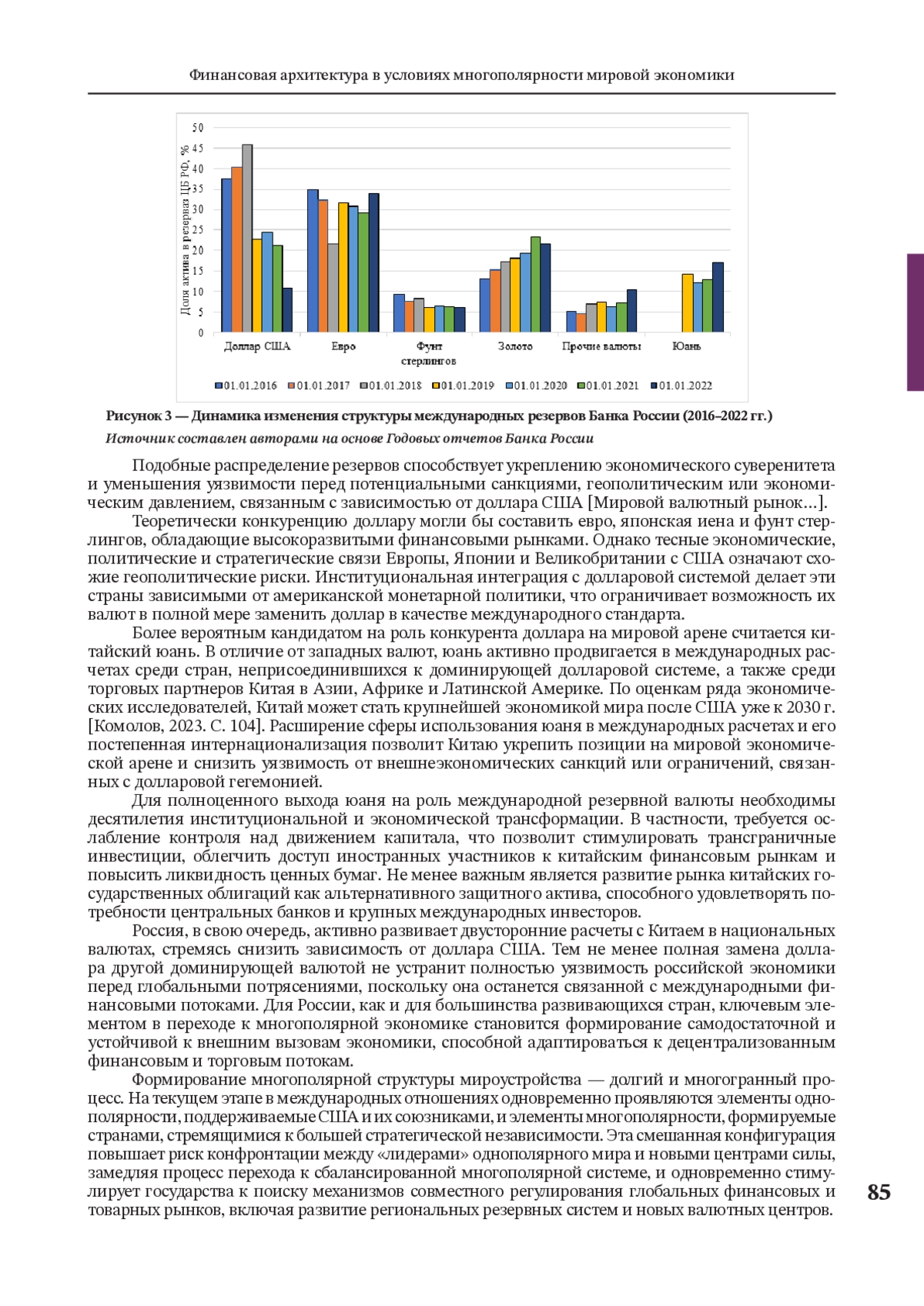 2. Комолов О.О. Глобальная роль доллара и тенденции дедолларизации мировой экономики в новых условиях // Экономическое возрождение России. 2023. № 2 (76). С. 102-118.
