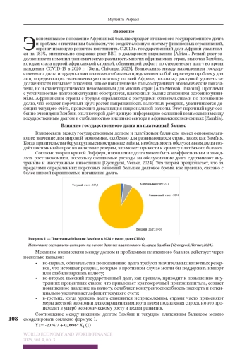 Экономическое положение Африки всё больше страдает от высокого государственного долга и проблем с платёжным балансом, что создаёт сложную систему финансовых ограничений, ограничивающую развитие континента. С 2010 г. государственный долг Африки увеличился на 183%, значительно опережая рост ВВП в долларовом выражении [Africa]. Резкий рост задолженности изменил экономическую реальность многих африканских стран, включая Замбию, которая стала первой африканской страной, объявившей дефолт по суверенному долгу во время пандемии COVID-19 в 2020 г. [Stein, Chitonge, 2025]. Взаимосвязь между накоплением государственного долга и трудностями платежного баланса представляет собой серьезную проблему для лиц, определяющих экономическую политику по всей Африке, поскольку растущий уровень задолженности вызывает опасения, что ее погашение не только ограничит экономические показатели, но и станет практически невозможным для многих стран [Atta-Mensah, Ibrahim]. Проблемы с устойчивостью долговой ситуации обостряются, платёжный баланс становится особенно уязвимым. Африканские страны с трудом справляются с растущими обязательствами по погашению долга, что создаёт порочный круг: растет напряжённость валютных резервов, увеличивается дефицит текущего счёта, происходит девальвация национальной валюты. Этот порочный круг особенно очевиден в Замбии, опыт которой даёт ценную информацию о сложной взаимосвязи между государственным долгом и стабильностью внешнего сектора в африканских экономиках [Zambia].