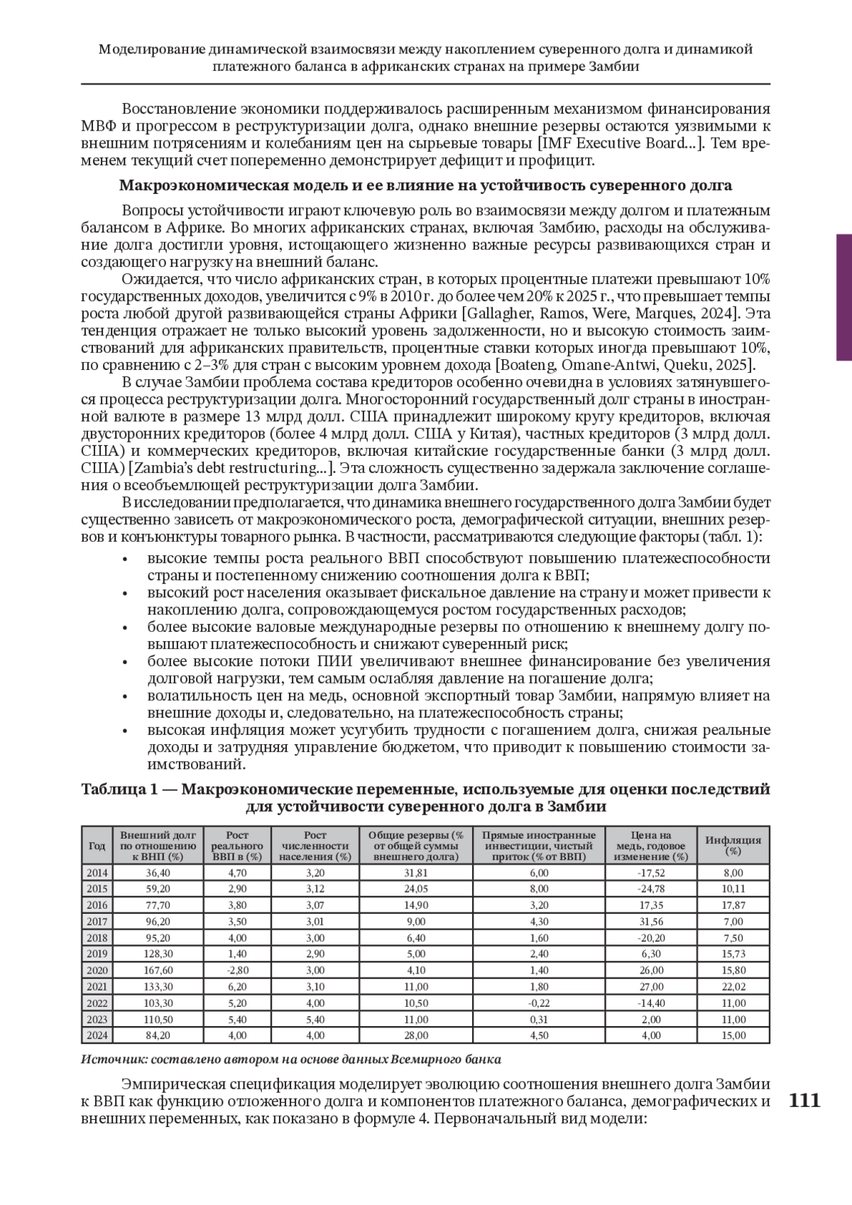 5. Chikalipah S. Sovereign debt and growth in Zambia: determining the tipping point. Social Sciences & Humanities Open, 2021, vol. 4, no. 1, pp. 100188.