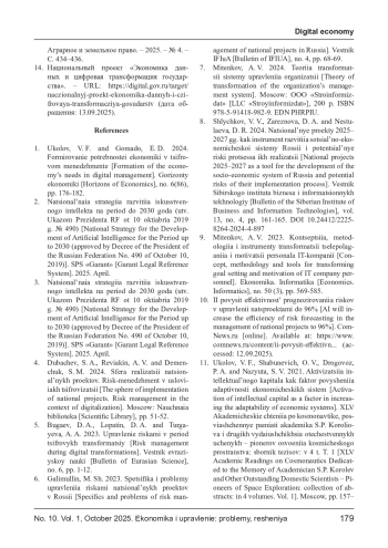 Статья: РАЗВИТИЕ МОНИТОРИНГА РИСКОВ НАЦИОНАЛЬНЫХ ПРОЕКТОВ В УСЛОВИЯХ ЦИФРОВИЗАЦИИ (2025)