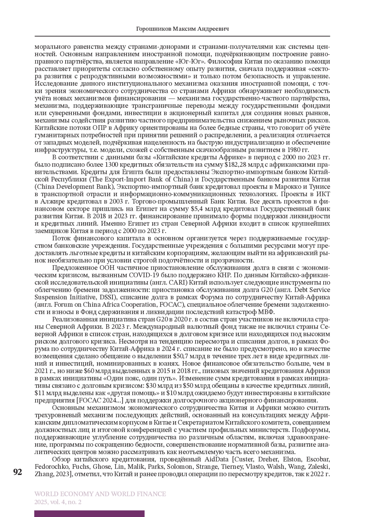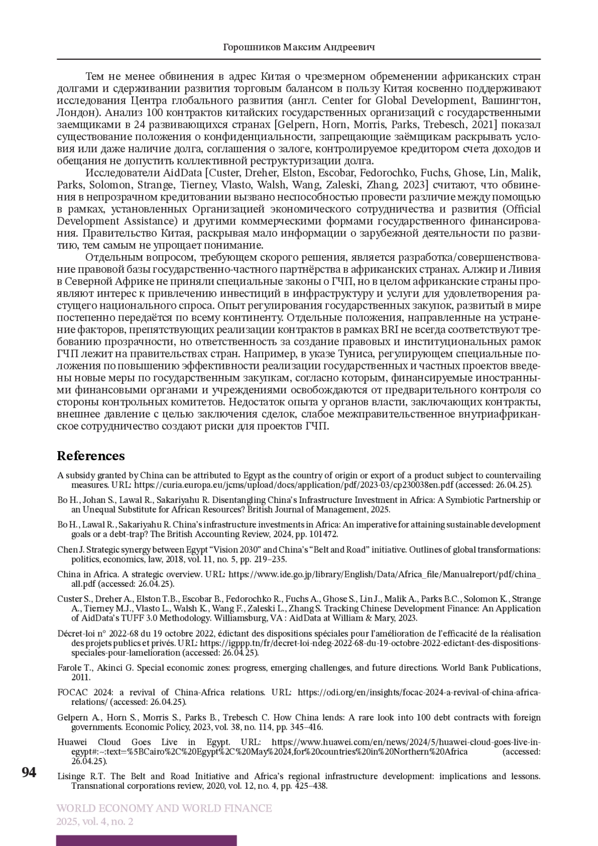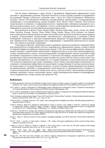ГОРОШНИКОВ М. А. МОДЕЛИ И МЕХАНИЗМЫ ФИНАНСОВО-ЭКОНОМИЧЕСКОГО СОТРУДНИЧЕСТВА СТРАН СЕВЕРНОЙ АФРИКИ И КИТАЯ // МИРОВАЯ ЭКОНОМИКА И МИРОВЫЕ ФИНАНСЫ. 2025. № 2, ТОМ 4