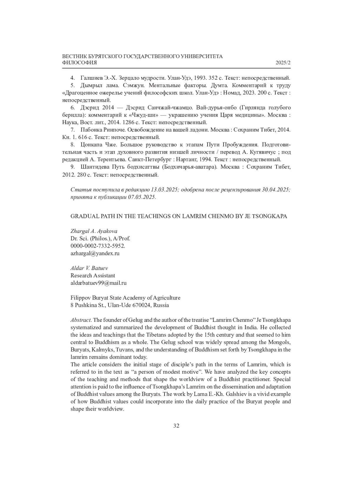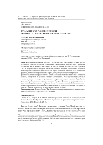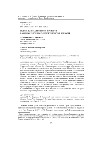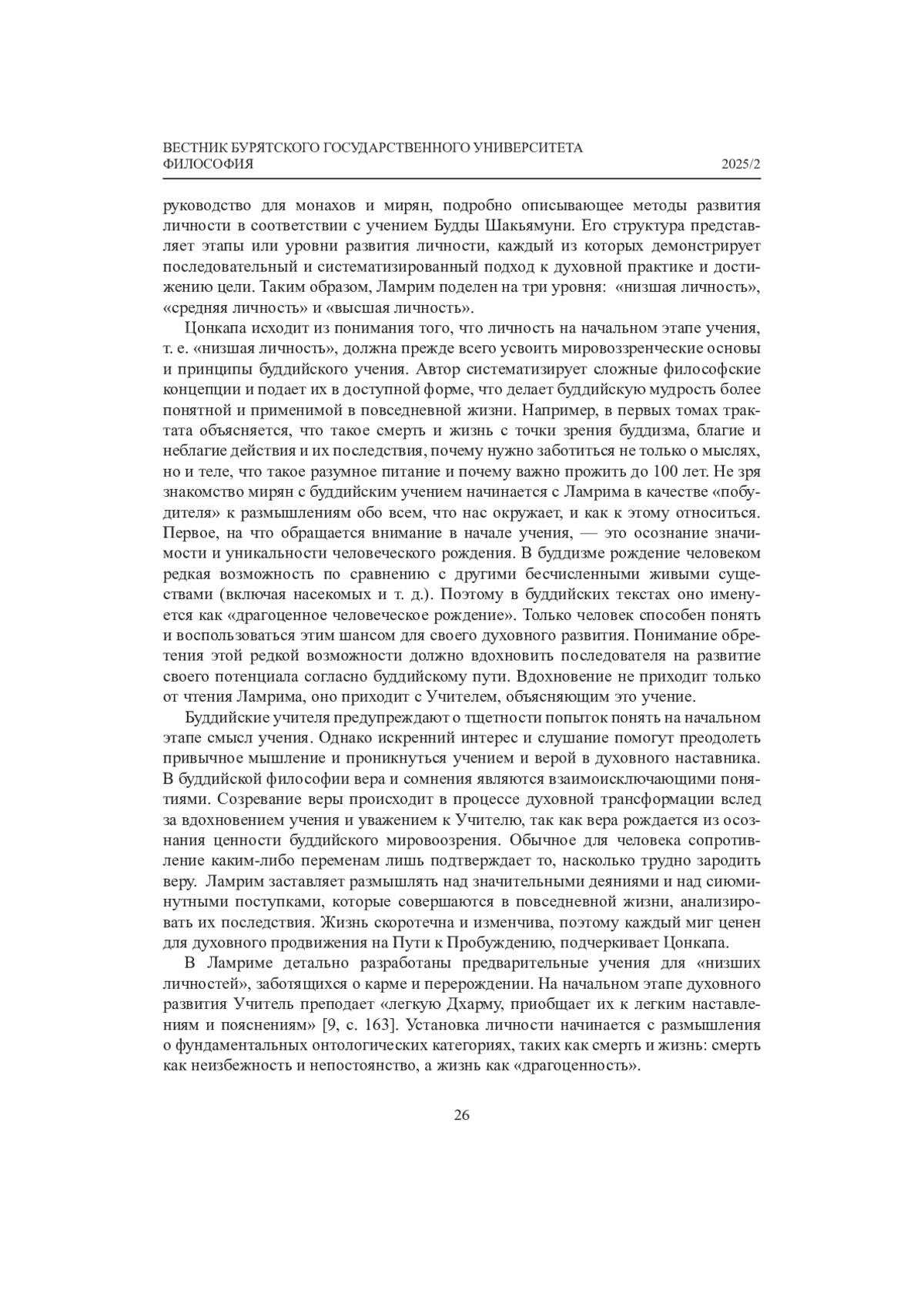 АЯКОВА Ж. А., БАТУЕВ А. В. ПУТЬ ЛИЧНОСТИ В КОНТЕКСТЕ УЧЕНИЯ ЛАМРИМ ЧЕНМО ЧЖЕ ЦОНКАПЫ // ВЕСТНИК БУРЯТСКОГО ГОСУДАРСТВЕННОГО УНИВЕРСИТЕТА. 2025. № 2