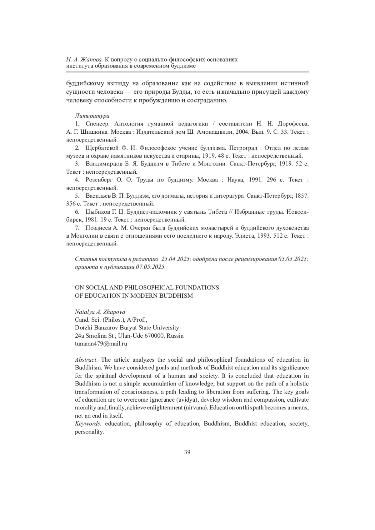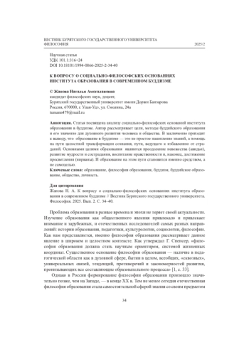 Статья: К ВОПРОСУ О СОЦИАЛЬНО-ФИЛОСОФСКИХ ОСНОВАНИЯХ ИНСТИТУТА ОБРАЗОВАНИЯ В СОВРЕМЕННОМ БУДДИЗМЕ (2025)