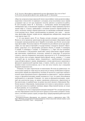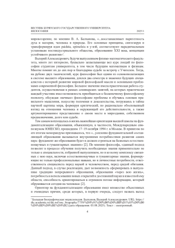 Ключевые фразы: общество, наука, философия, целостное мировоззрение, образование, высшее образование, фундаментализация образования, в а балханов