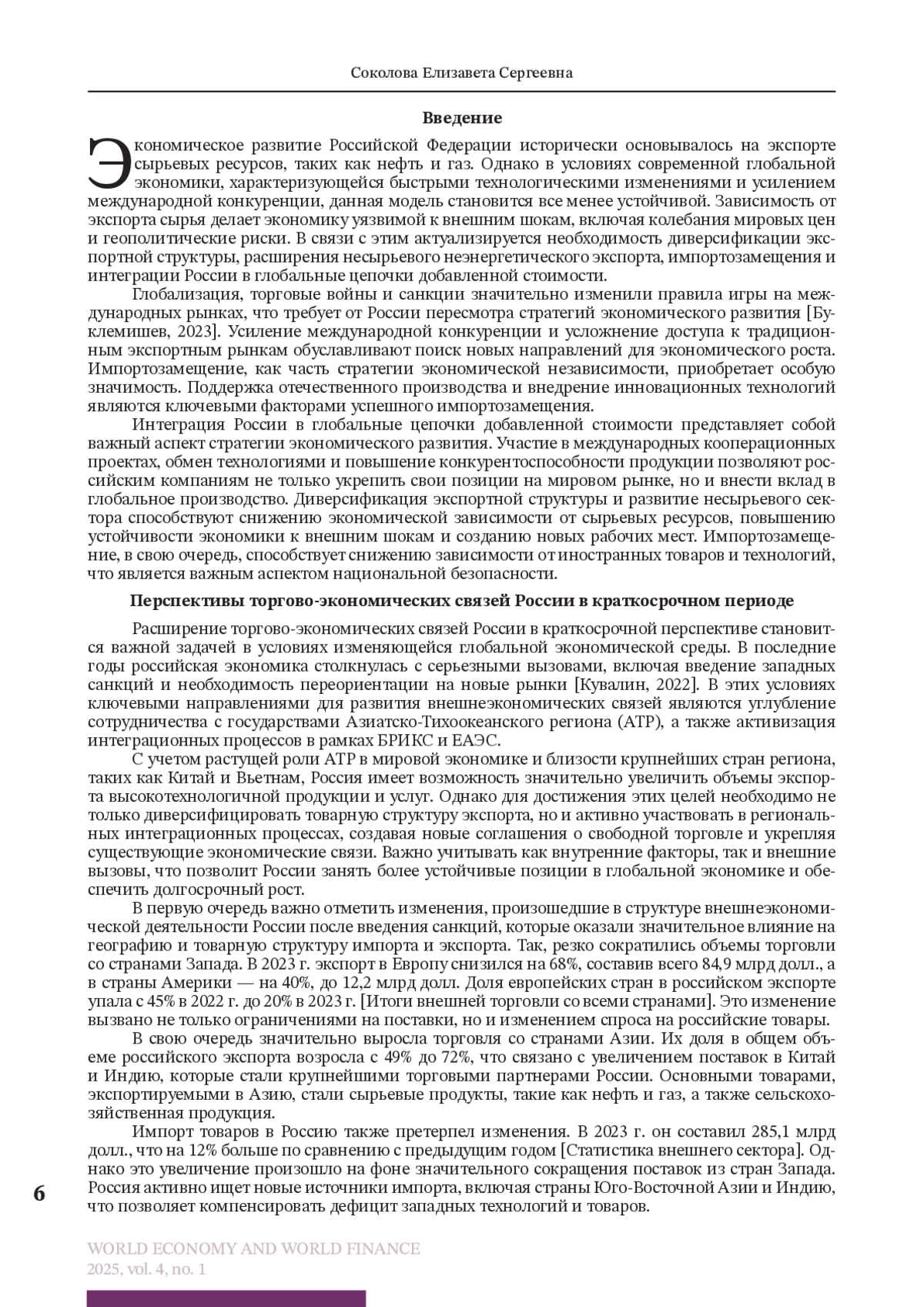 5. Воронова Т.А. Перестройка внешнеэкономической деятельности России в условиях санкций: вызовы и возможности // Вестник Алтайской академии экономики и права. 2023. № 12-3. С. 410-414.