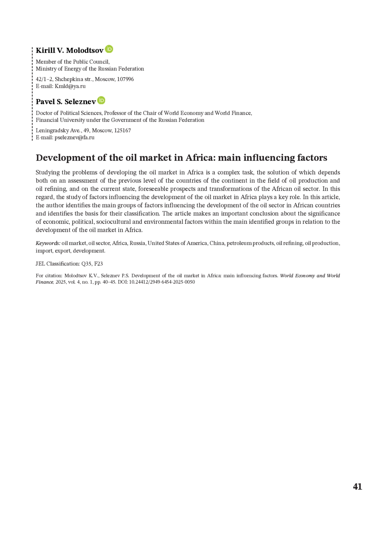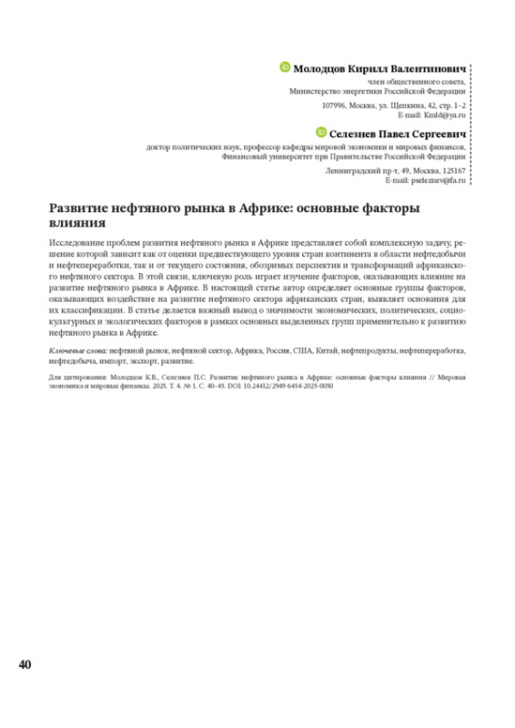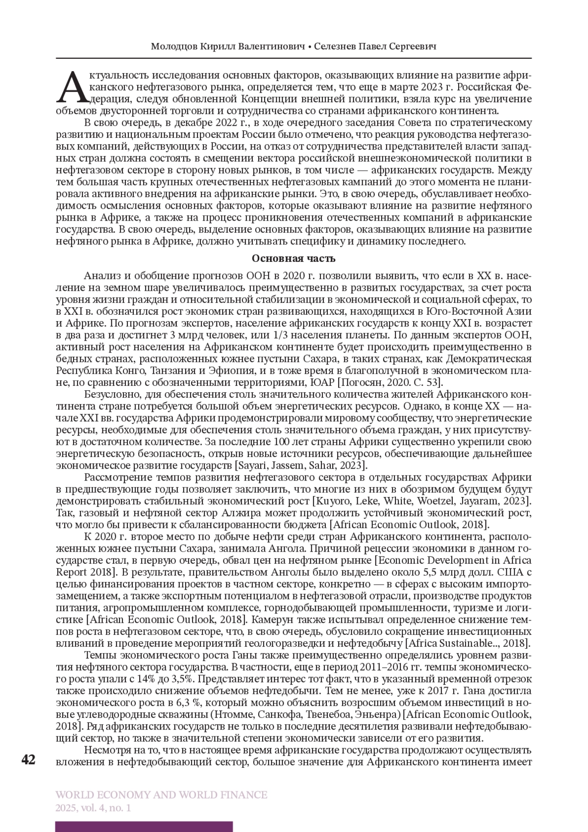 2. Погосян А.С. Африка: большие интересы, большие риски // Энергетическая политика. 2020. № 10 (152). С. 52-61.