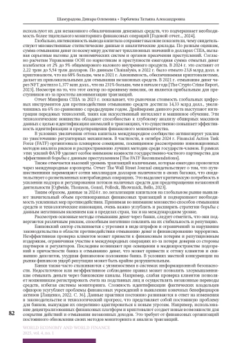 10. Танющева Н.Ю., Исакова Э.Т. Оценка масштабов отмывания денег в России // Вопросы экономики. 2024. № 10. С. 77-93.