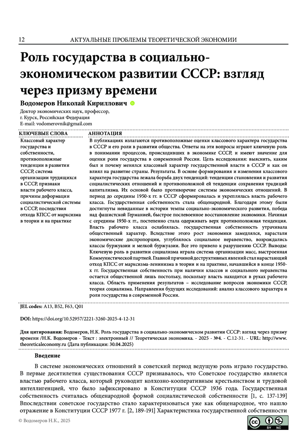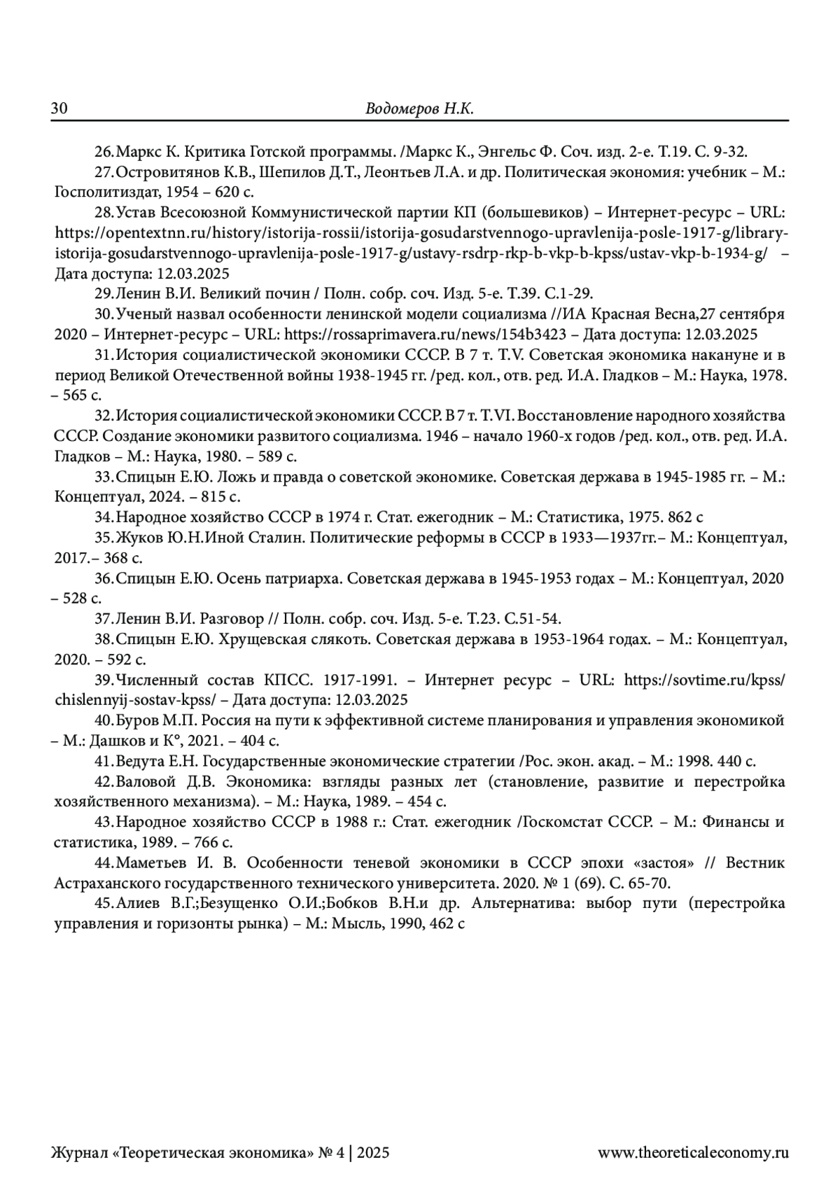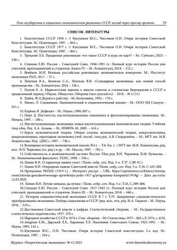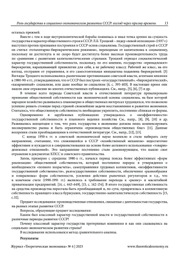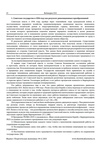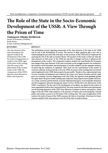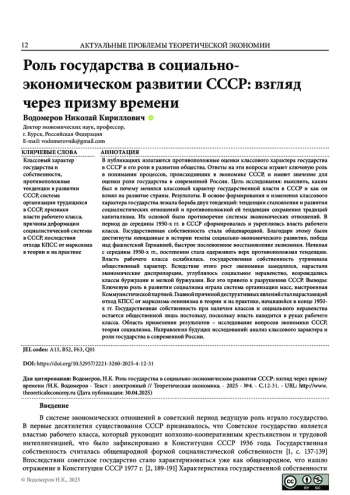 ВОДОМЕРОВ Н. К. РОЛЬ ГОСУДАРСТВА В СОЦИАЛЬНО-ЭКОНОМИЧЕСКОМ РАЗВИТИИ СССР: ВЗГЛЯД ЧЕРЕЗ ПРИЗМУ ВРЕМЕНИ // ТЕОРЕТИЧЕСКАЯ ЭКОНОМИКА. 2025. № 4 (124)