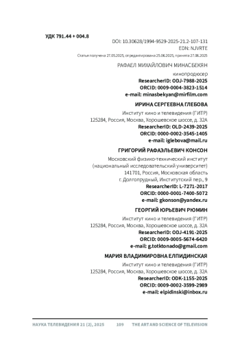 В представленной публикации предпринята попытка изучить возможности применения технологий искусственного интеллекта в кинопроизводстве, что раскрывается в идеях, обсуждаемых группой исследователей с выдающимся разносторонним продюсером Рафаелом Минасбекяном, являющимся одним из ключевых акторов современного кинопроизводства России.
