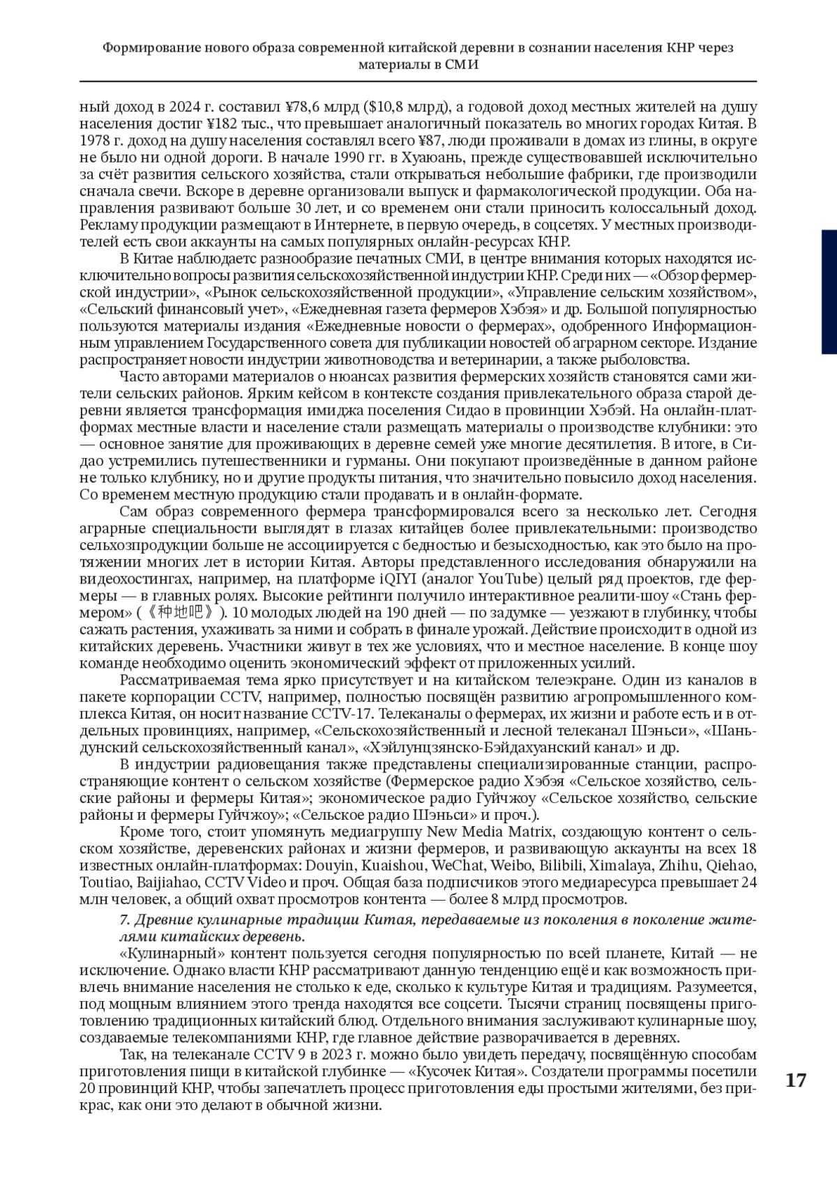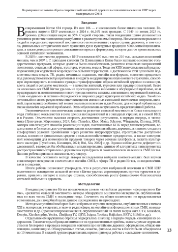 Статья: Формирование нового образа современной китайской деревни в сознании населения КНР через материалы в СМИ (2025)