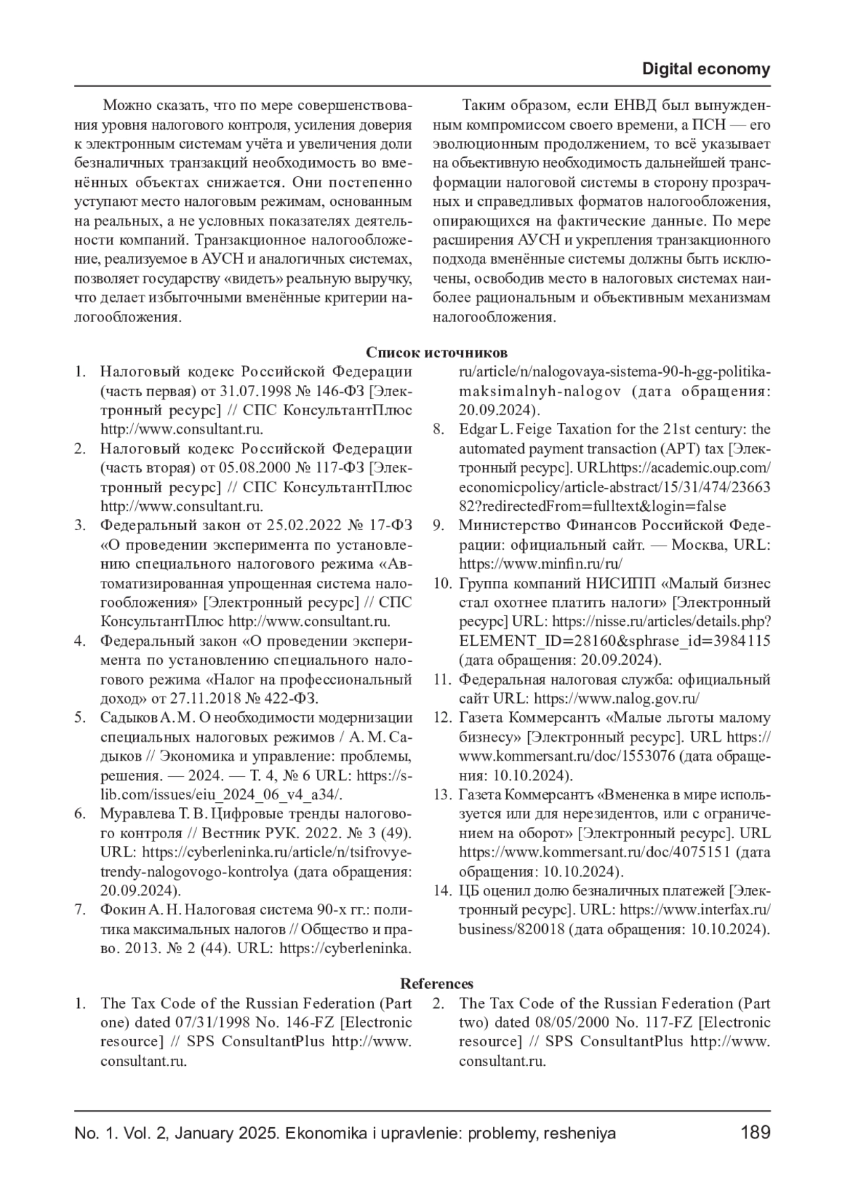 5. Садыков А. М. О необходимости модернизации специальных налоговых режимов / А. М. Садыков // Экономика и управление: проблемы, решения. - 2024. - Т. 4, № 6 URL: https://slib.com/issues/eiu_2024_06_v4_a34/. EDN: UHSFWT