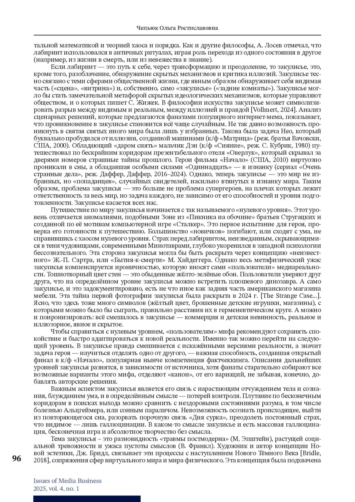 8. Greenshields W. Another Alternative Reality? Exploring the Backrooms with Žižek // International Journal of Žižek Studies. 2023. Т. 17. № 1.