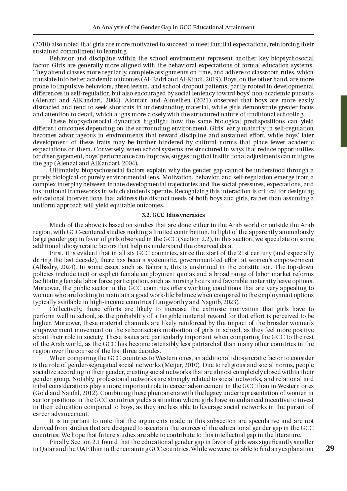 13. Булила Д. и Хентати Л. (2022), Попытка объяснить сокращение гендерного разрыва в успеваемости в арабских странах. Обзор образовательной и социальной политики стран Персидского залива, 3 (1), стр. 91-123.