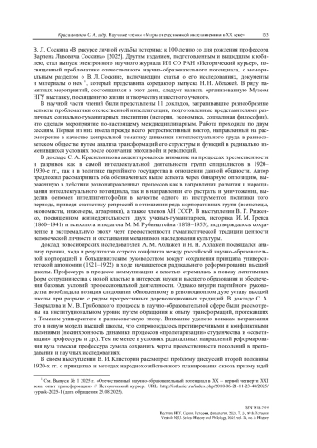 Представлен отчет о Научных чтениях «Миры отечественной интеллигенции в XX веке: профессия, общество, власть», проходивших на базе Новосибирского государственного университета 26 февраля 2025 г. Мероприятие было посвящено 100-летию со дня рождения исследователя культуры и интеллигенции советской эпохи, доктора исторических наук, профессора Варлена Львовича Соскина.