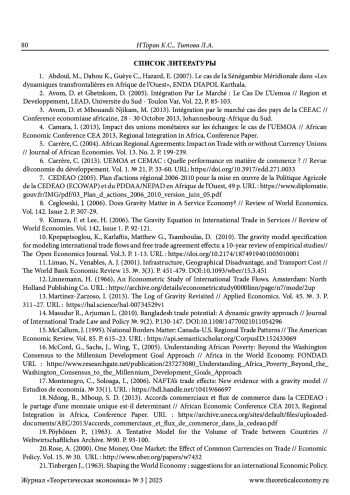 5. Carrère, C. (2004). African Regional Agreements: Impact on Trade with or without Currency Unions // Journal of African Economies. Vol. 13. No. 2. Р. 199-239. EDN: IQSGHJ
