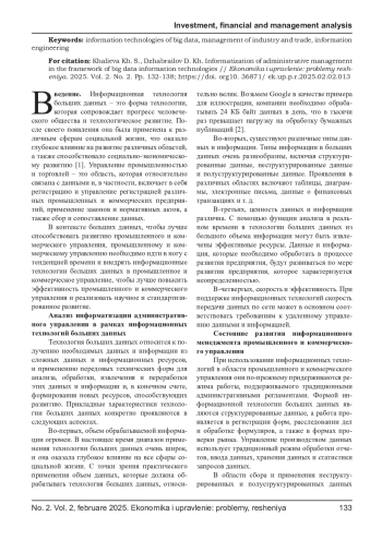 Статья: ИНФОРМАТИЗАЦИЯ АДМИНИСТРАТИВНОГО УПРАВЛЕНИЯ В РАМКАХ ИНФОРМАЦИОННЫХ ТЕХНОЛОГИЙ БОЛЬШИХ ДАННЫХ (2025)