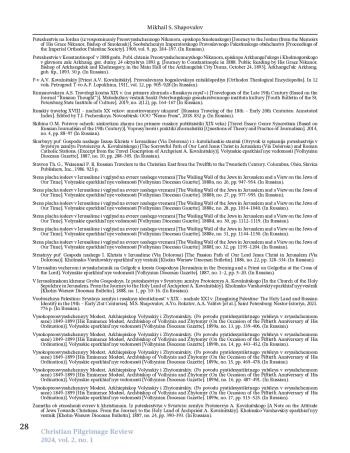 45. Kovalnitskiy A. Iz puteshestviya v Svyatuyu Zemlyu [From a Journey to the Holy Land]. Strannik [The Pilgrim]. 1887i, no. 12, pp. 677-697. (In Russian).